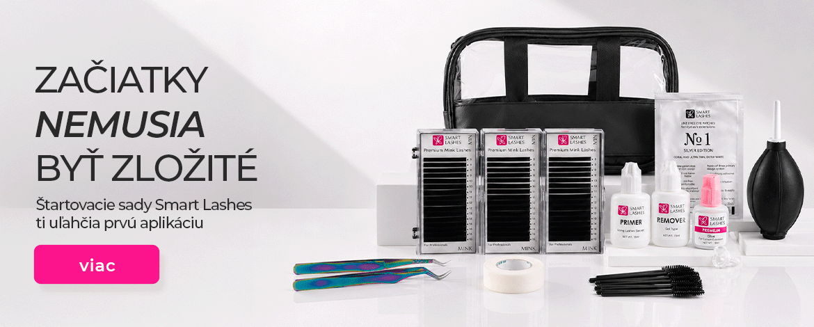 U nás v Smart Lashes sa všetko podriaďuje spokojnosti zákazníka. Preto v našej širokej ponuke produktov nájdete všetko potrebné na predlžovanie mihalníc ako klasickou technikou riasa na riasu, tak aj produkty pre objemové techniky. Špecializujeme sa na kvalitné umelé mihalnice a lepidlá na mihalnice, ale nájdete u nás aj produkty pre trvalú, lamináciu a farbenie mihalníc a obočia. V našom sortimente nechýbajú ani základné produkty pre vybavenie salónov, oblečenie a pomôcky pre lash stylistu a produkty starostlivosti o zdravie a hygienu. Všetky produkty najprv testujeme v našich vlastných salónoch aby sme si boli istí, že sa k vám dostanú len tie najlepšie.